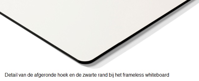 Whiteboard frameless met afgeronde hoeken 98 x 198 cm en stijlvolle zwarte rand Frameloos whiteboard met afgeronde hoeken en zwart afgelakte randen. Sfeervol als strak designobject met functionele schrijftoepassing. Het meegeleverde verborgen ophangsysteem (onzichtbaar te monteren) zorgt voor een fraaie afwerking van het geheel.